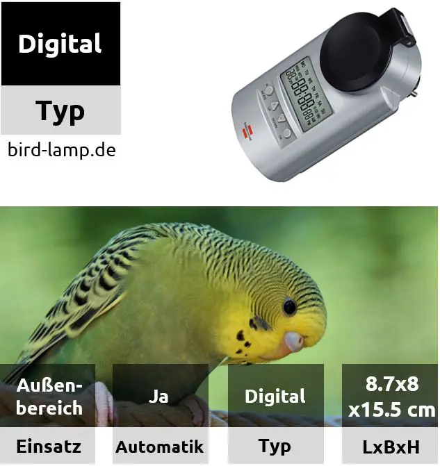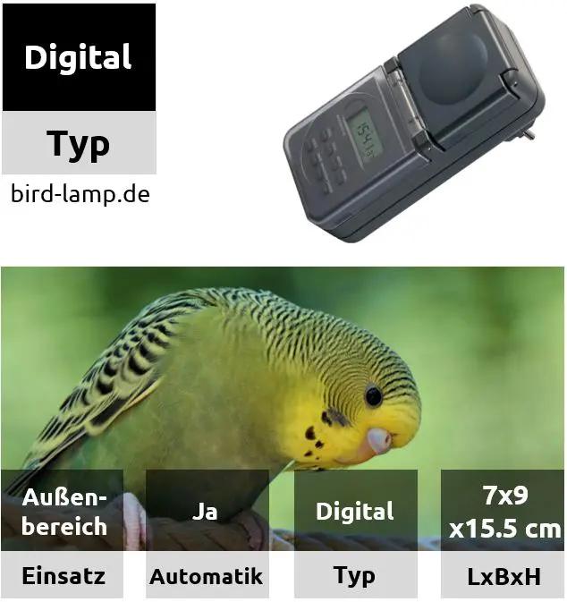 Wir führen auf unserer Website sowohl analoge wie auch digitale Zeitschaltuhren. Dabei ist die Funktionsweise bei beiden Versionen identisch und besonders zuverlässig. Digitale Zeitschaltuhren haben den Vorteil, dass sie feiner steuerbar sind und ihnen so mehr Flexibilität bieten. Was die Zuverlässigkeit angeht so sind sie mit beiden Varianten gut beraten und sorgen für zuverlässige Beleuchtung im ganzen Jahr. Ihre Vögel werden es Ihnen danken.
